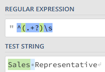 Sales Representative, the regex pattern^(.+?)\swill outputSales. - a