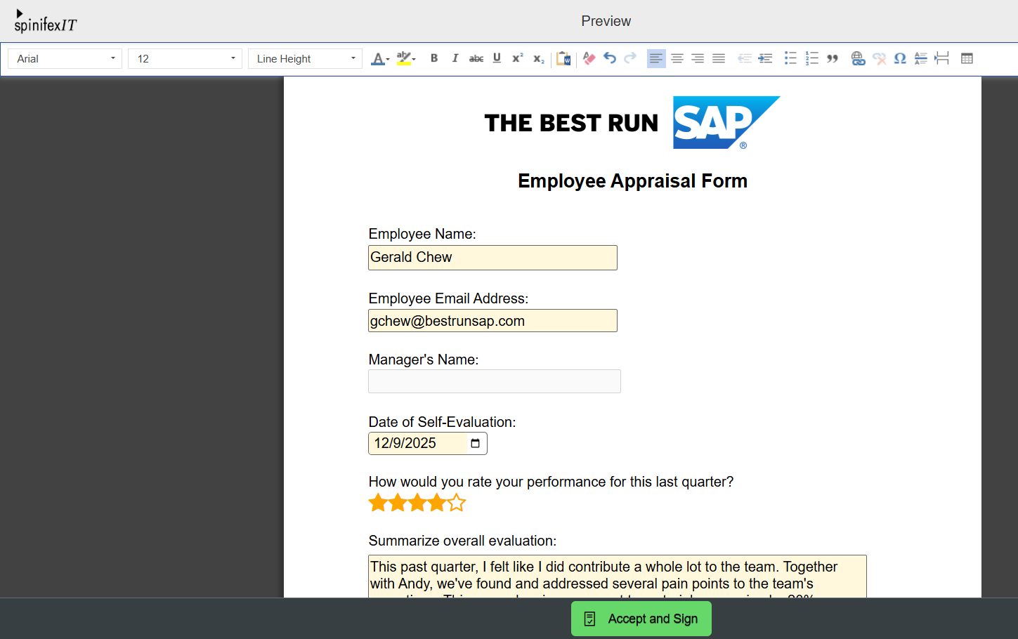 Forms are similar to Documents, but allow for Form Fields to be added. These Form Fields can help to create surveys, performance reviews, and any kind of document that requires inputting values and ratings.