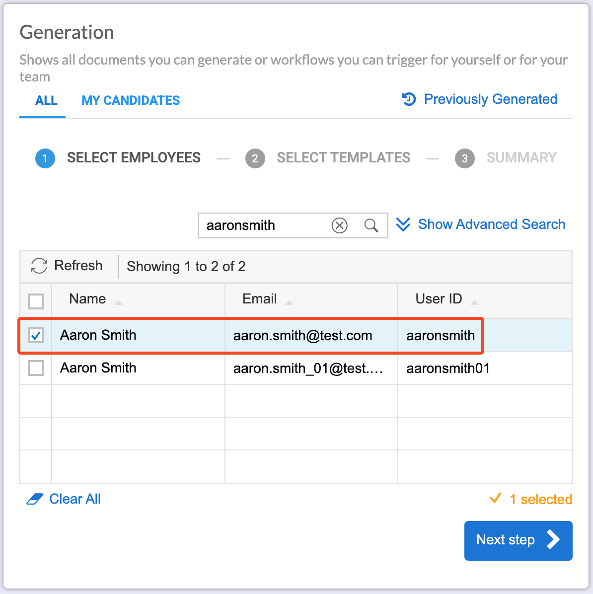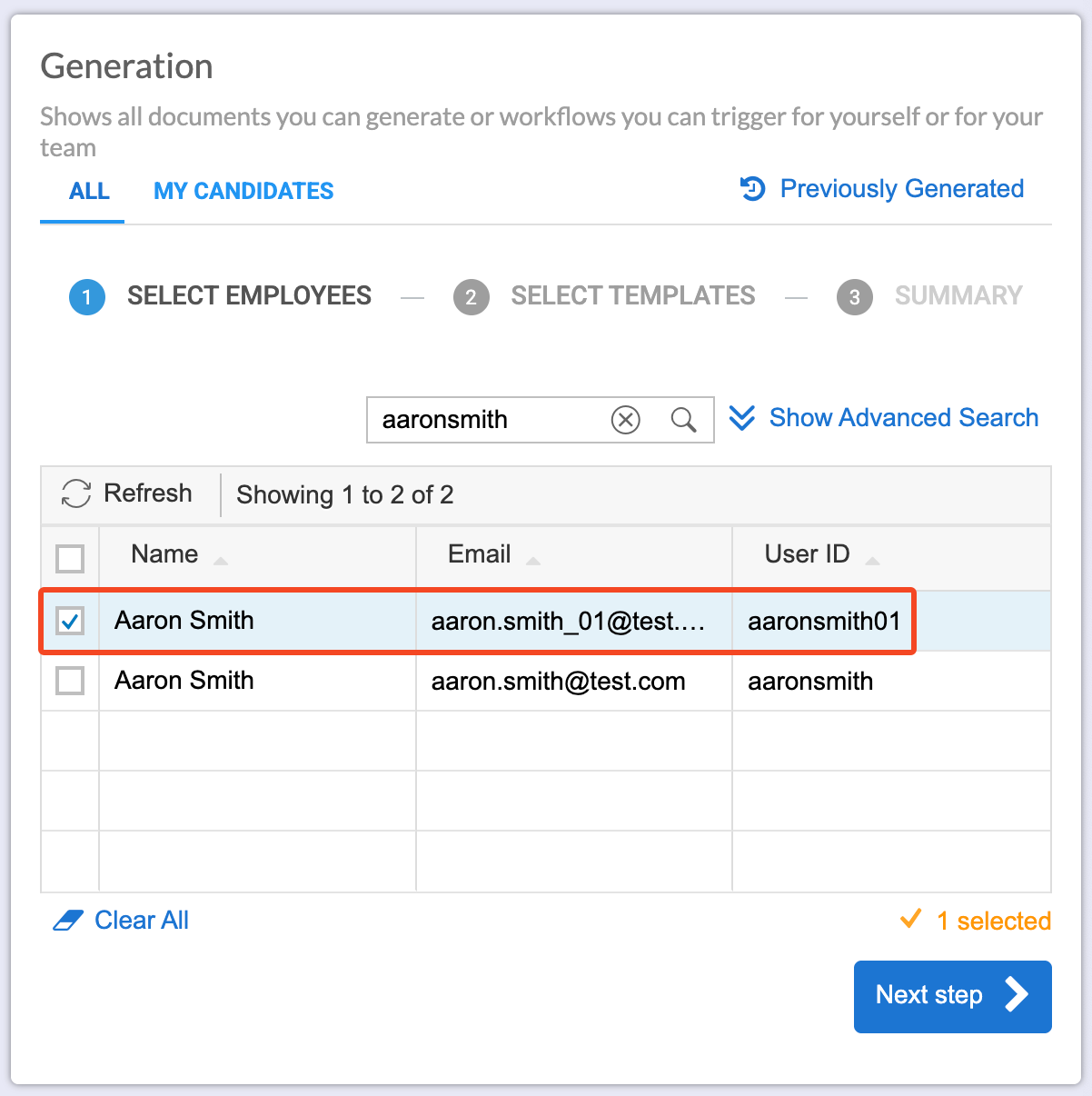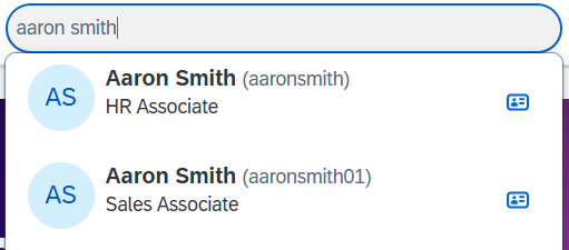 For example, Aaron Smith has multiple employment records in SuccessFactors: one as an HR Associate, and one as a Sales Associate. Take note of the different username in the parentheses.