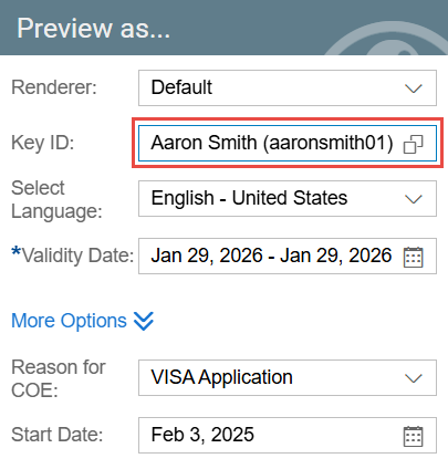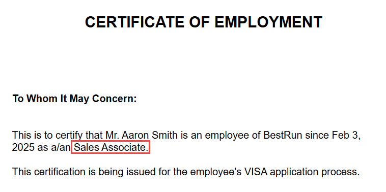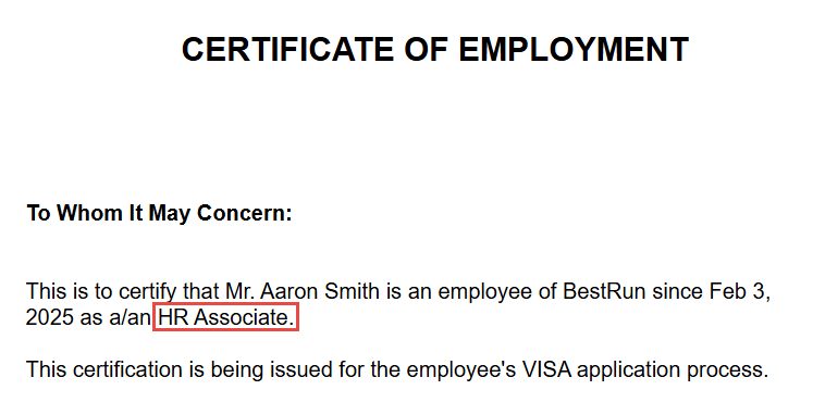 This improvement ensures that field data, such as Job Title, assignment details, and other employment-specific information, is consistently retrieved from the correct employment record, improving data accuracy and reliability across Document Generation and Workflow execution.
