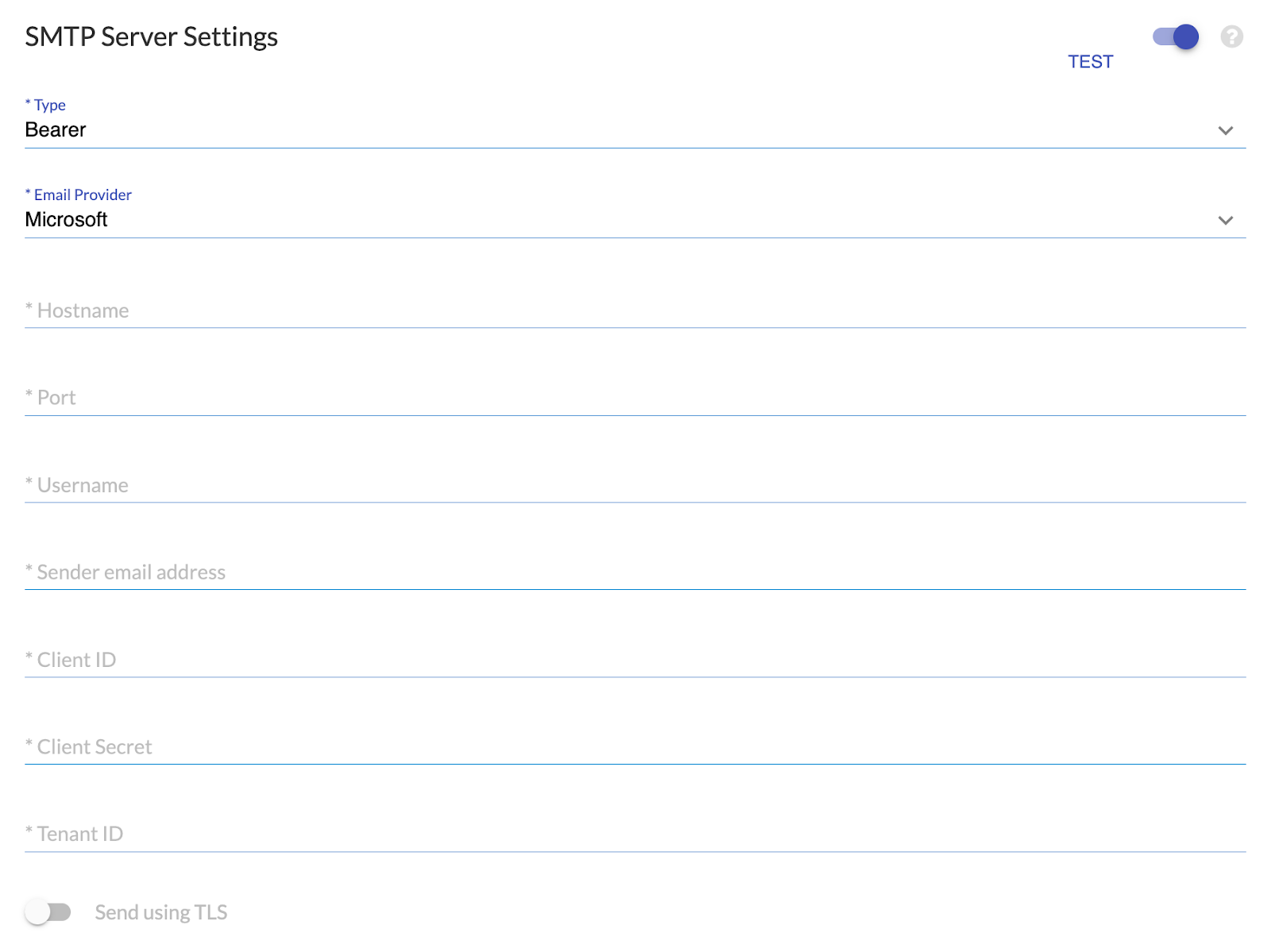 Selecting Bearer as the authentication type enables you to configure a Microsoft SMTP server as the Email Provider.