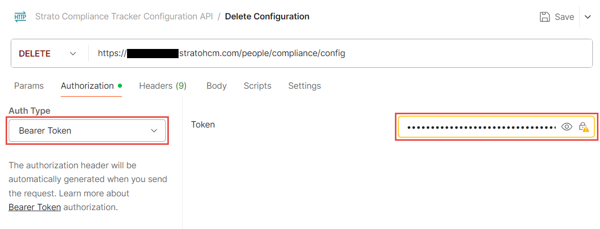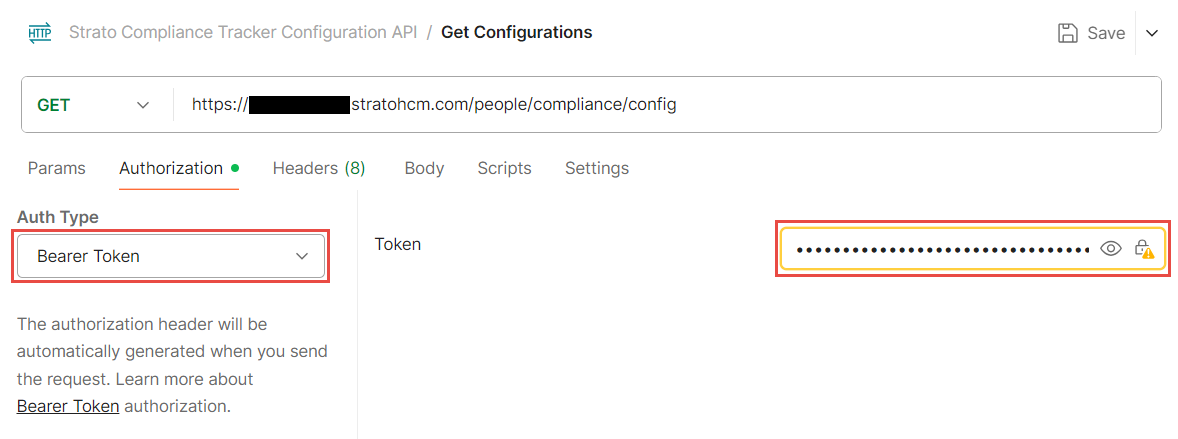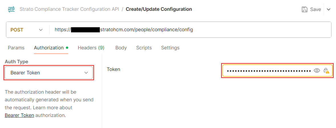 - Go to the Authorization tab and set the Auth Type to Bearer Token. Fill in the Token field with your Bearer Token.
