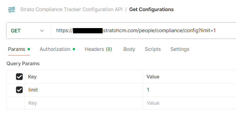 <System URL>/people/compliance/configand set the method to GET.