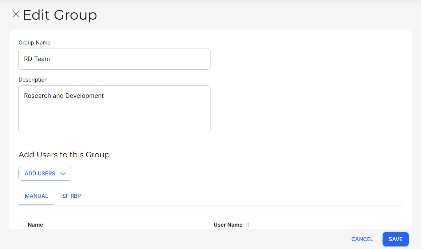 - SuccessFactors Role-Based Permissions (RBP): The Select SuccessFactors RBP Groups modal allows you to select which RBPs to add, which will fetch all users that belong to the selected RBPs.