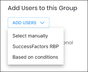 The Add Users to this Group dropdown menu allows you to choose how to add users to the Group. There are three ways to add users: