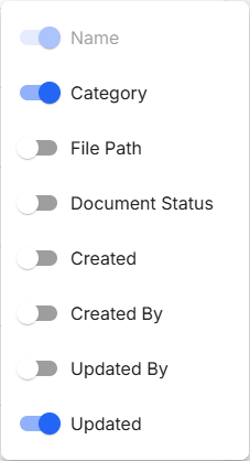 By default, these details include the file’s Name, the Category of the file, and the date and time the file was last Updated.