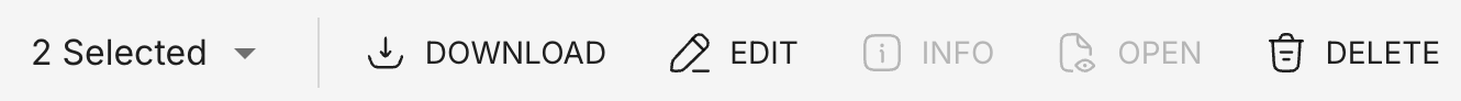 When selecting more than one file using the checkboxes, the following actions can be performed: