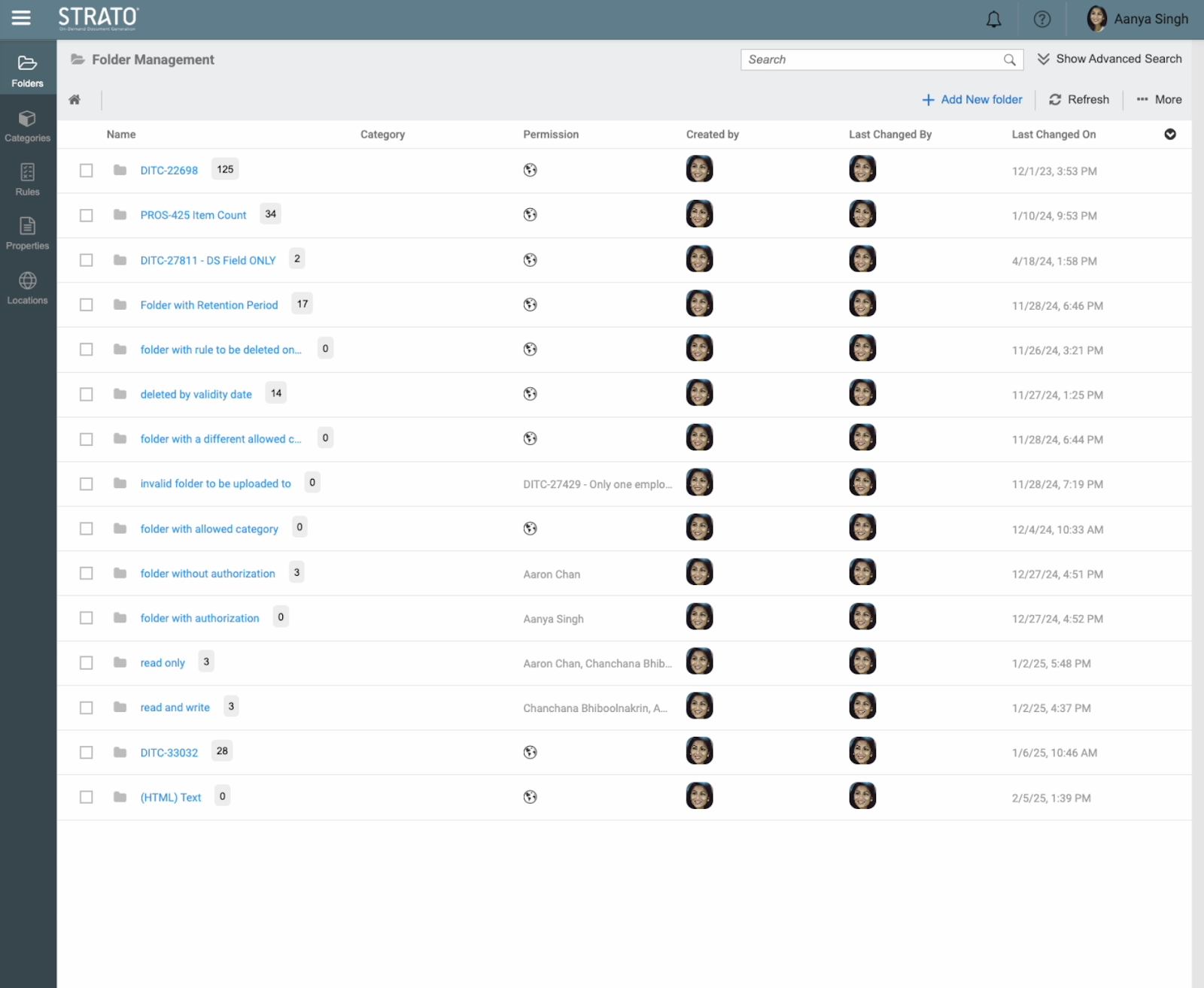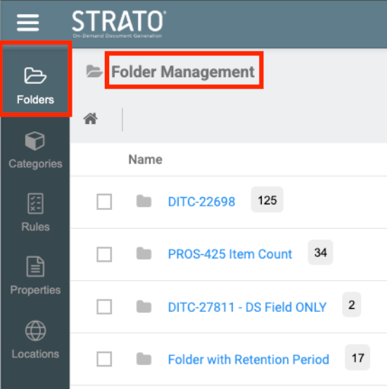 In Strato Document Management V2, File Organizer is also renamed to Folders. These updates are applied consistently across tabs, section titles, action buttons, and tooltip texts.