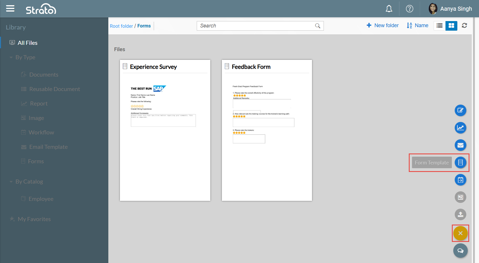 In the Library, create a Form Template by clicking the Form Template icon from the action button on the lower right of the screen.
