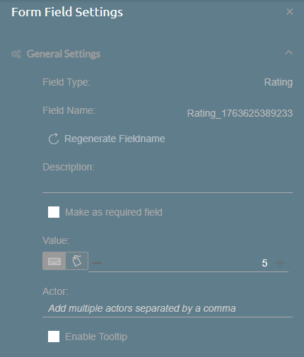 - Field Type: Indicates the Form Field Type, in this case, Rating.