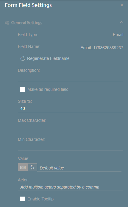 - Field Type: Indicates the Form Field Type, in this case, Email.