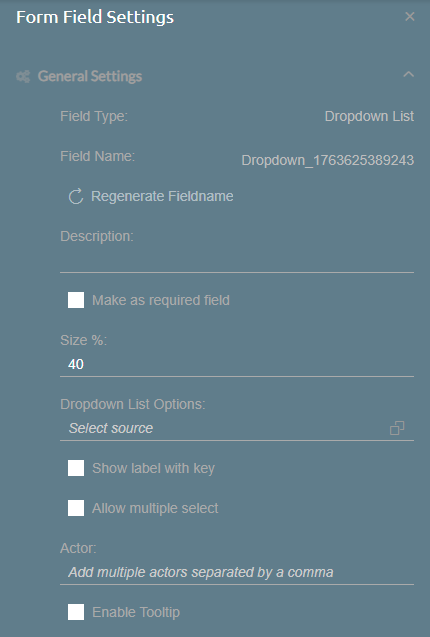- Field Type: Indicates the Form Field Type, in this case, Dropdown List.
