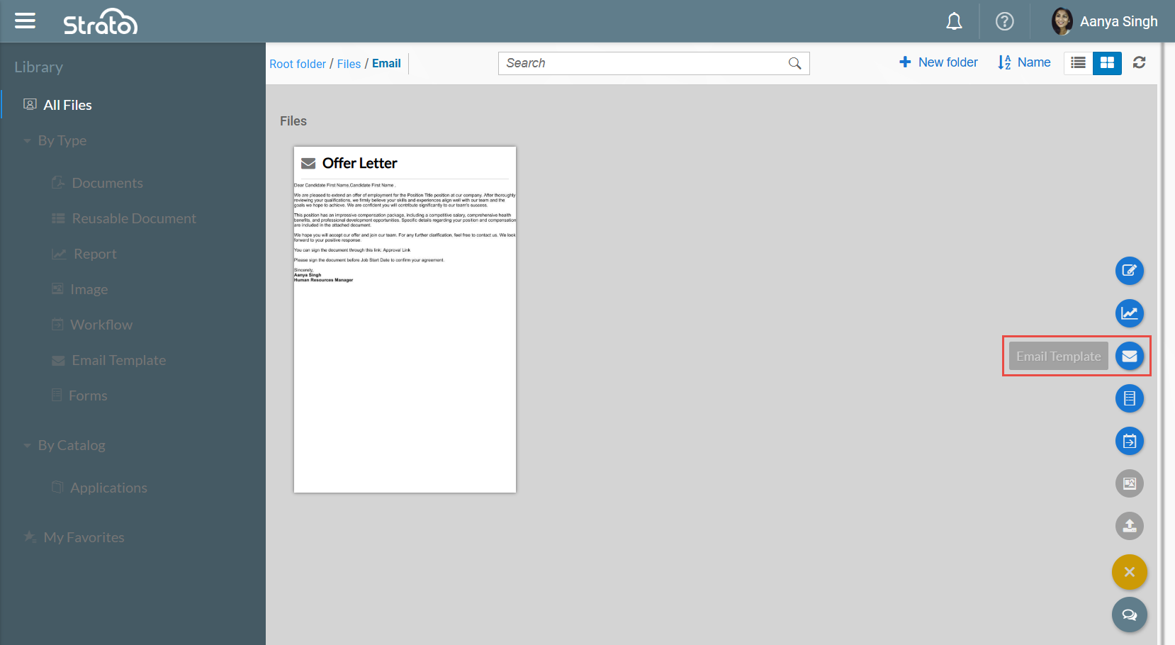 In the Library, create an Email Template by clicking the Email Template icon from the action button on the lower right of the screen.