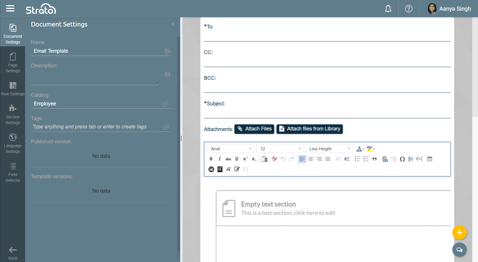 A blank Email Template would then be created. You can edit this template like you would edit a Document Template.