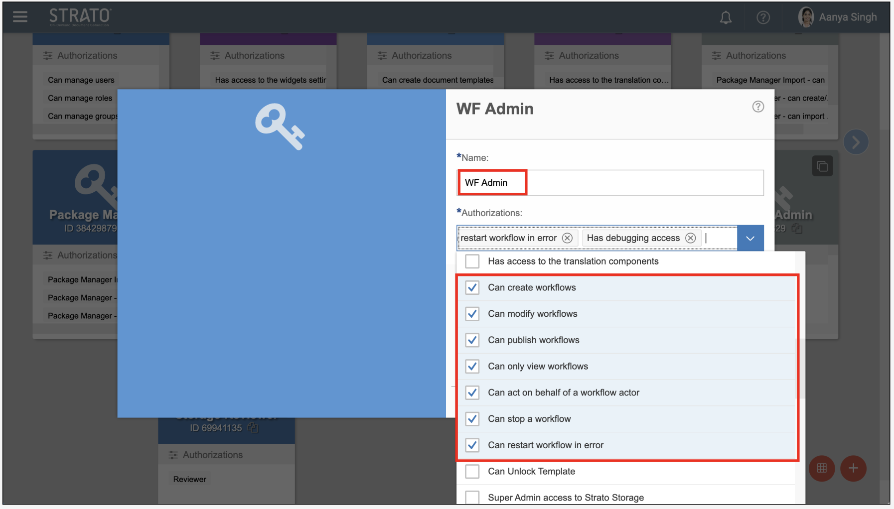 In line with the Strato Workflow feature, specific users must be able to manage workflows in their systems. These users in Strato must first be assigned to a user role that have workflow administrative authorizations.