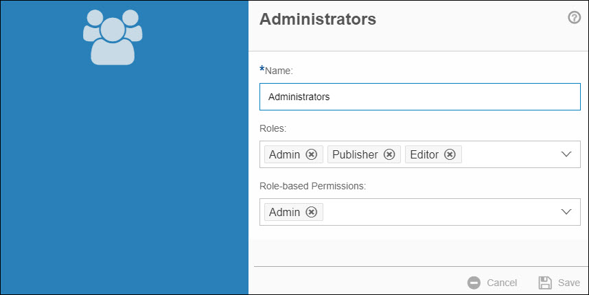 - Roles - Select the roles that the group will have. This is based on the roles that you have in the Roles tab.