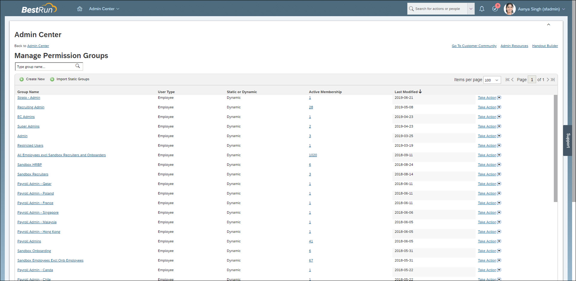 These are the list of the groups from the Manage Permissions Groups page from the SuccessFactors portal.