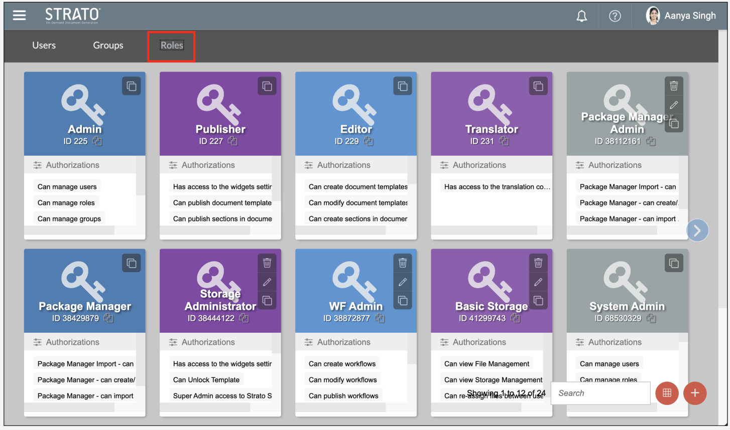Roles can be combined to create a group. Multiple users can be assigned to a group.