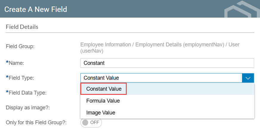 - Optionally, you can set the Constant Field to only be available for your selected Field Group by enabling the Only for this Field Group? toggle.