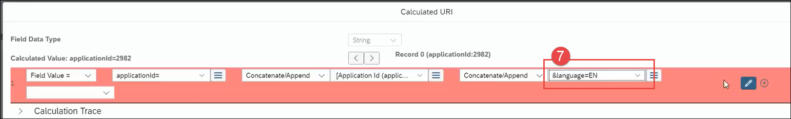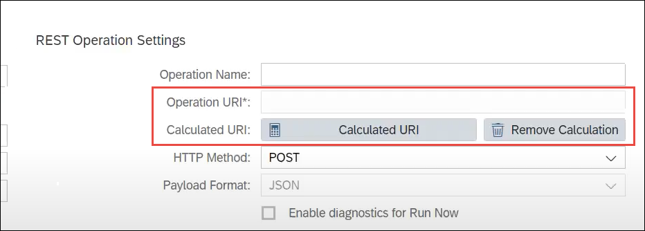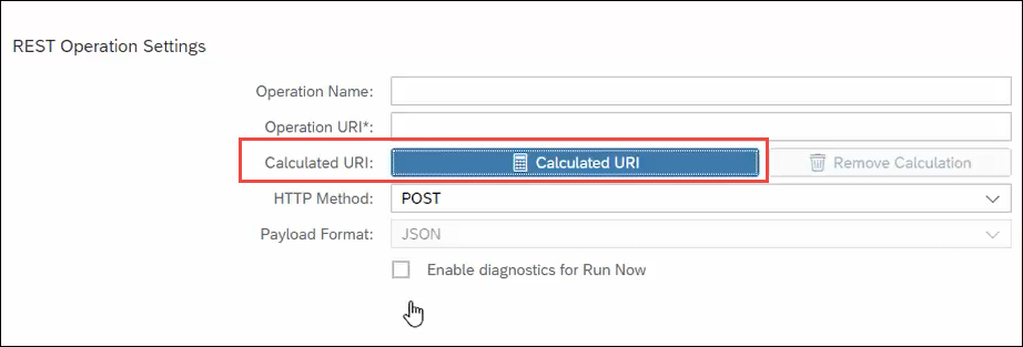 - For these to be mapped to their corresponding SuccessFactors fields, from the Destination Settings (which is in Step 4 of How to Trigger Strato Workflow via SuccessFactors), click the Calculated URI button.