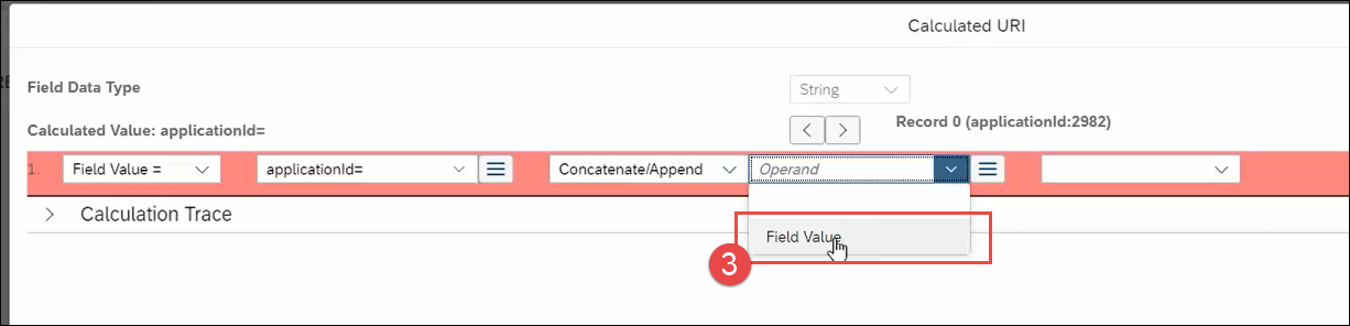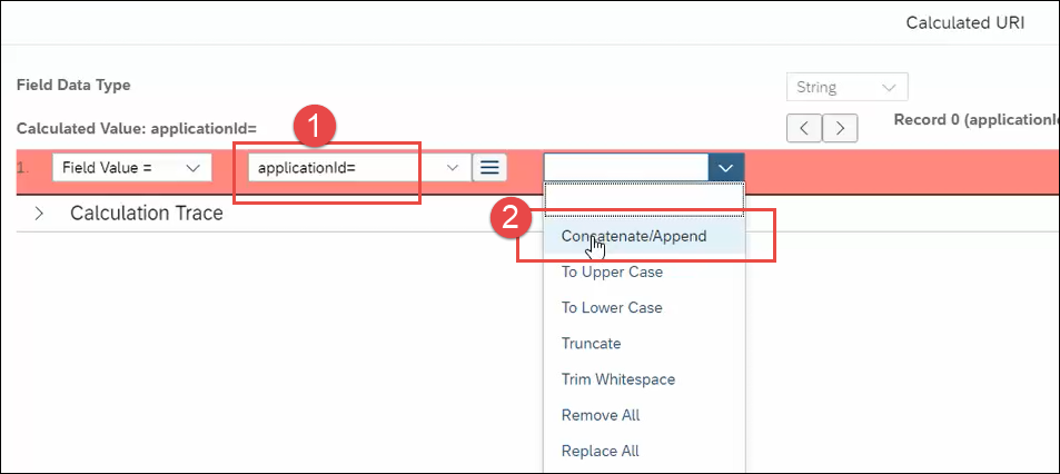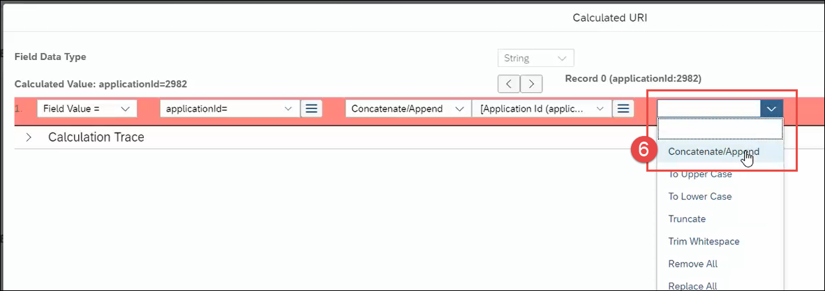 - Then, for the next field, select Concatenate/Append.