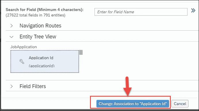 - When done with the selection, click on the Change Association to "field" button. In this example, it's the Change Association to "Application ID" button.