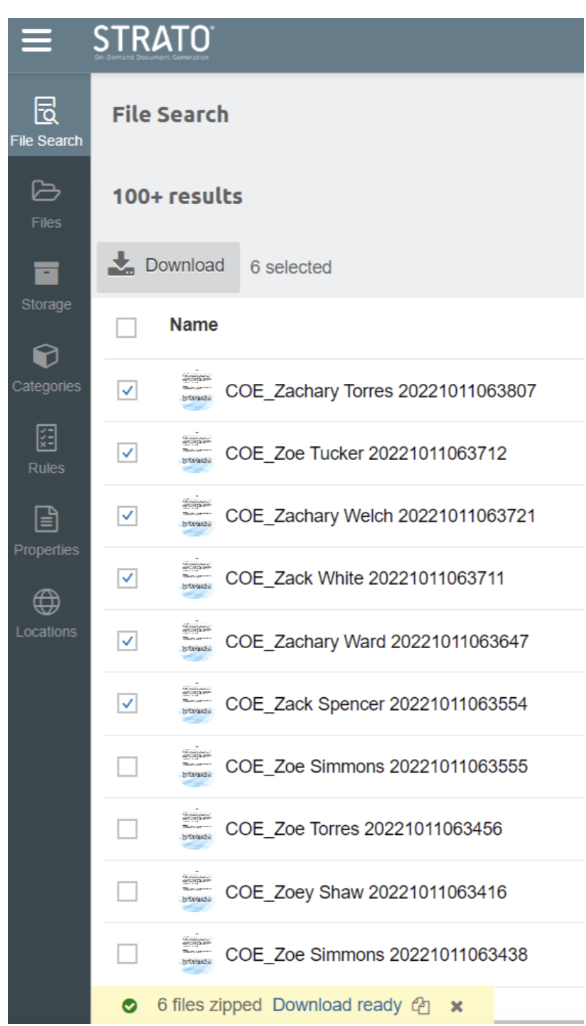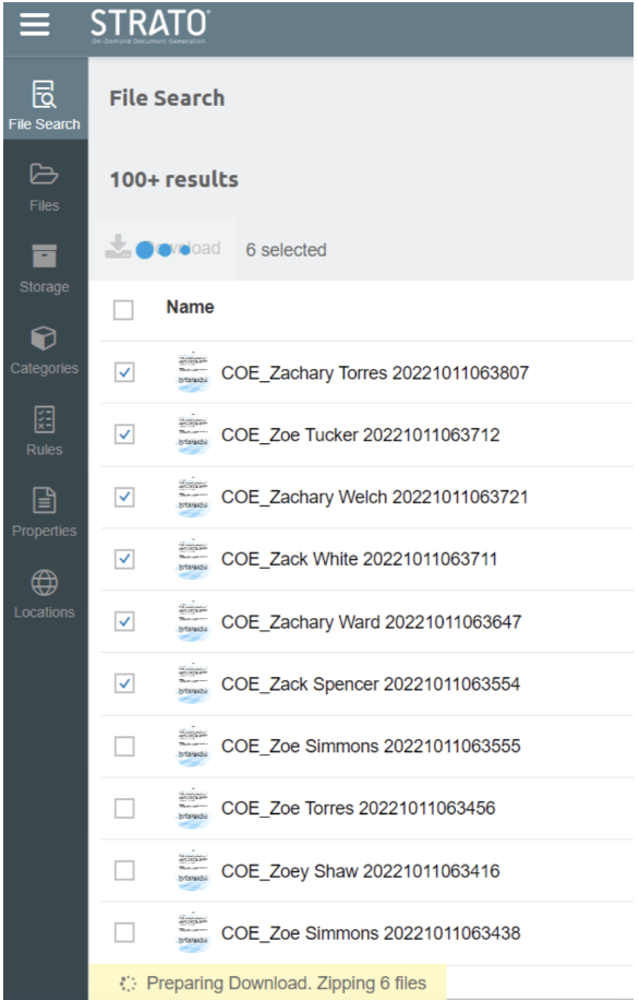 There is also an option to download multiple files at once. The system will package selected files into a ZIP archive, which the user can then download to their local drive.