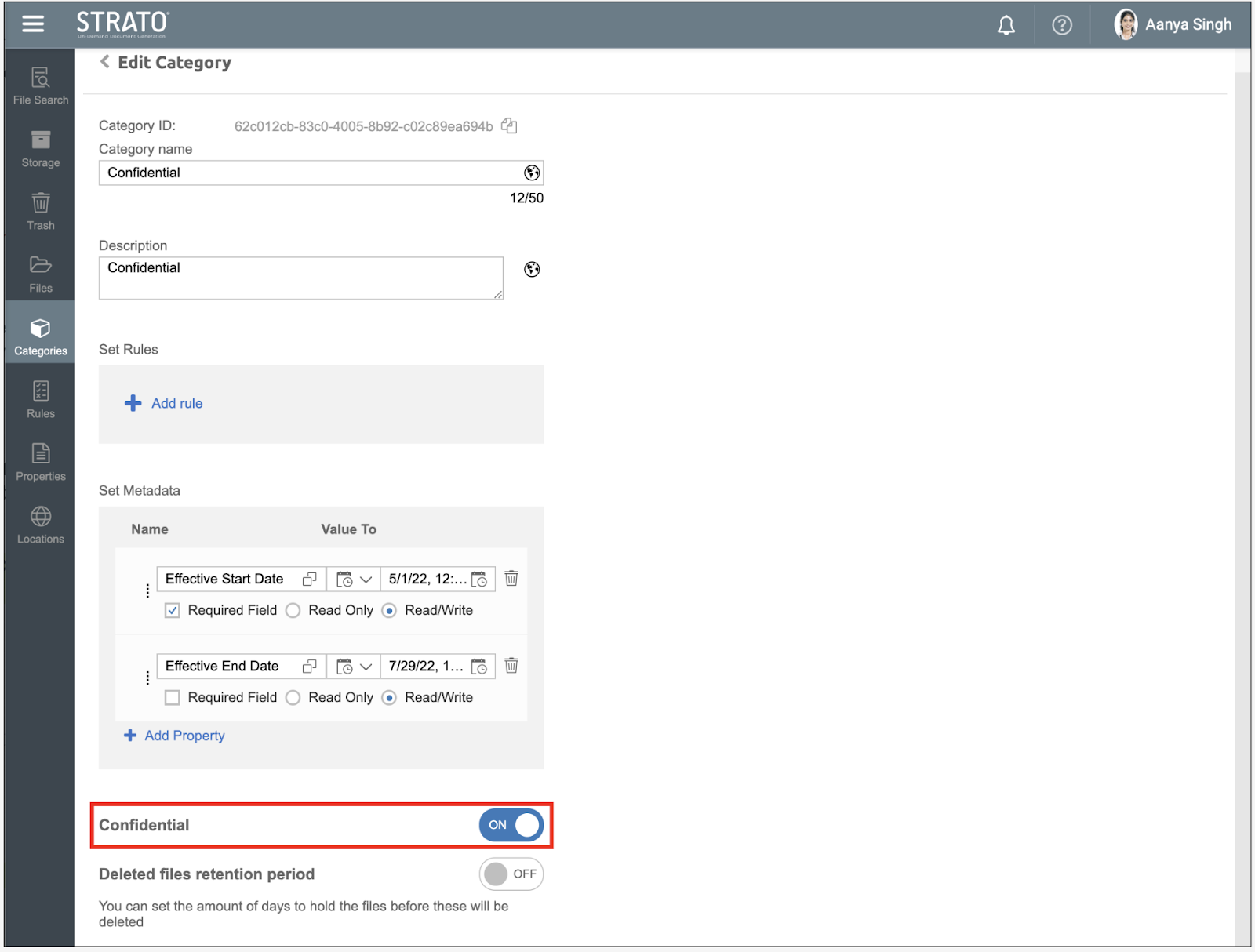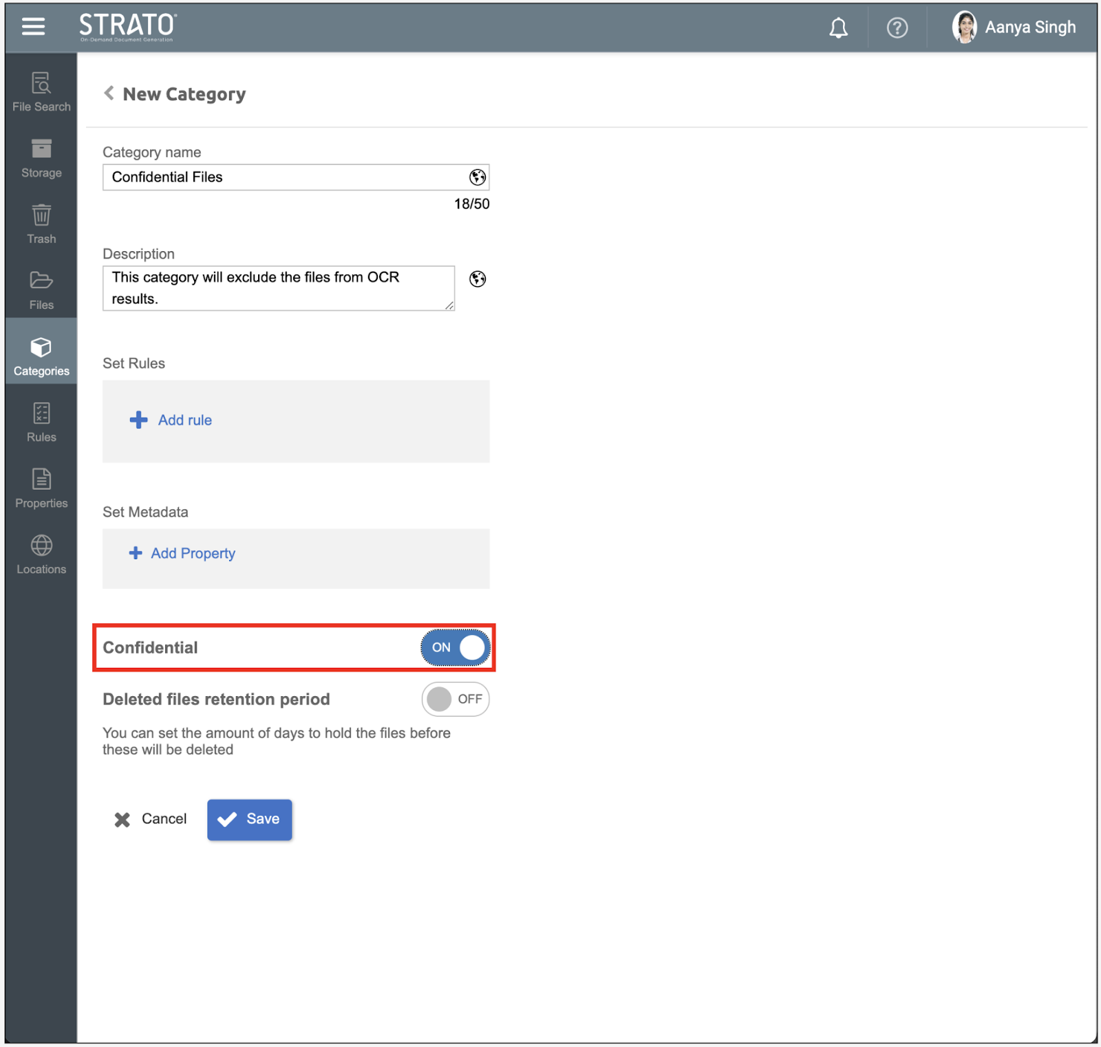For enhanced security, the Confidential toggle feature is added to Category Management, allowing users to apply it to files or folders. This ensures that the content remains hidden in content-based search results.