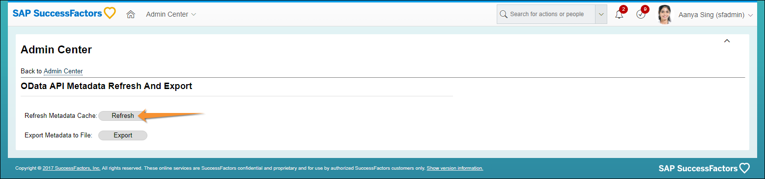 - Refresh metadata in SuccessFactors