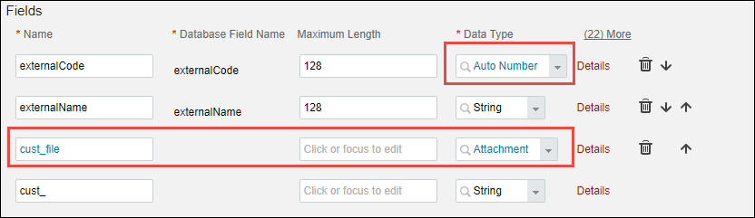 - externalCode must have Data Type of "Auto Number"