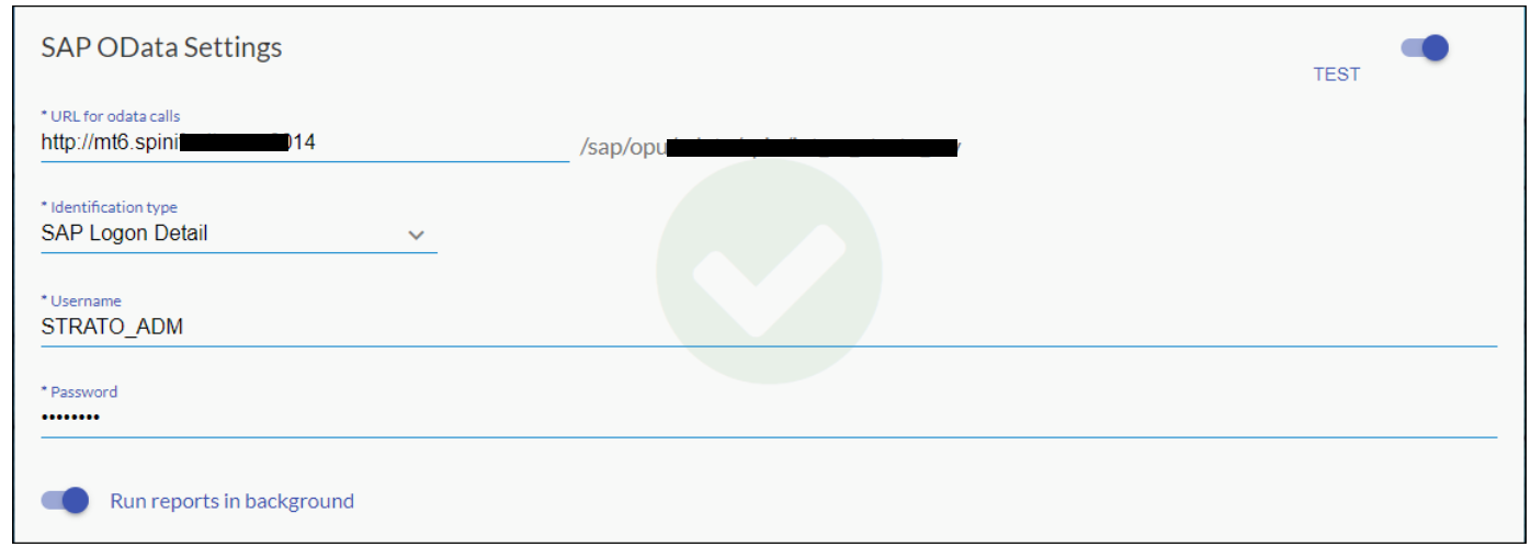 - You can test your settings by clicking on the Test button on the top right corner of the SAP OData Settings box.