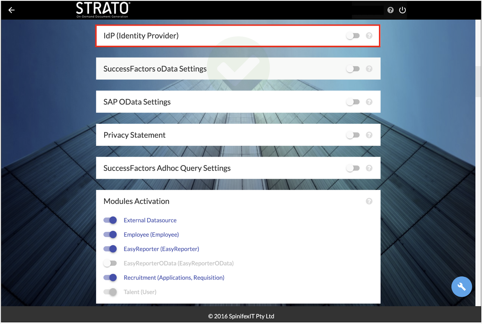 If users wish to try out Strato with SuccessFactors data without setting up SuccessFactors, the Spinifex IdP option can be utilized instead.