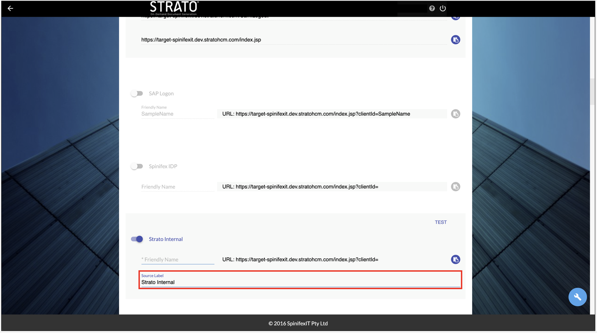 The Strato Internal IdP is used by external users to access the system. When the Strato Internal IdP is toggled ON, Source Label becomes available. The value entered in here accepts only alphanumeric characters including spaces and is limited to 50 characters. It serves as the name of the value of the Source in Strato Storage, and if left empty, it will default to Strato Internal across Strato Storage.
