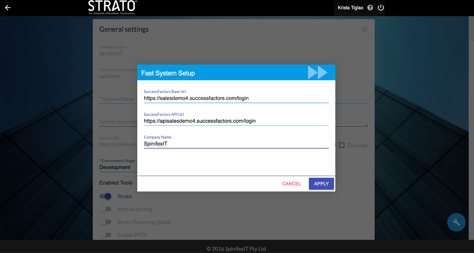 A System is the environment where a company can run Strato. Through this System, you will be able to link multiple instances of SuccessFactors, such as its test or production system, to their Strato account.