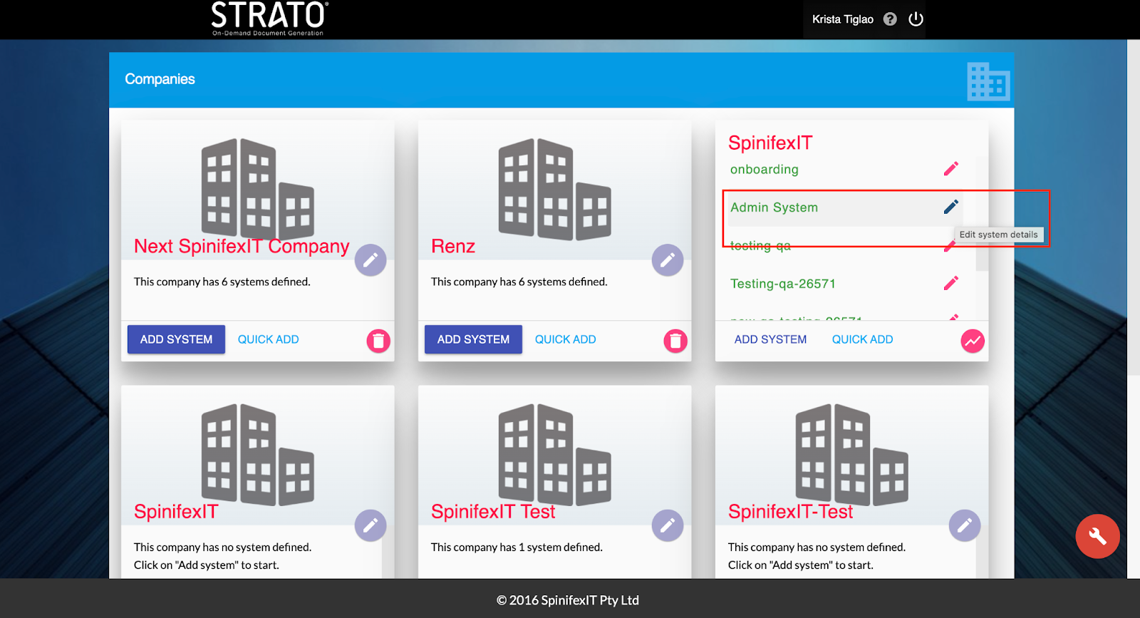 To access a System from your dashboard, all you have to do is select the Company that contains the System, then hover over the system you would like to access.