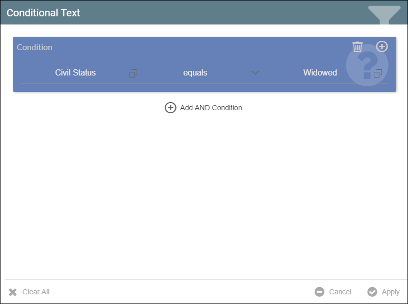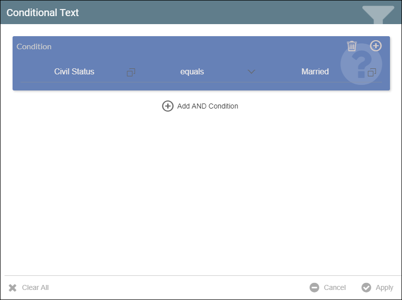 - As shown above, highlight your chosen text and then click Conditional Text.