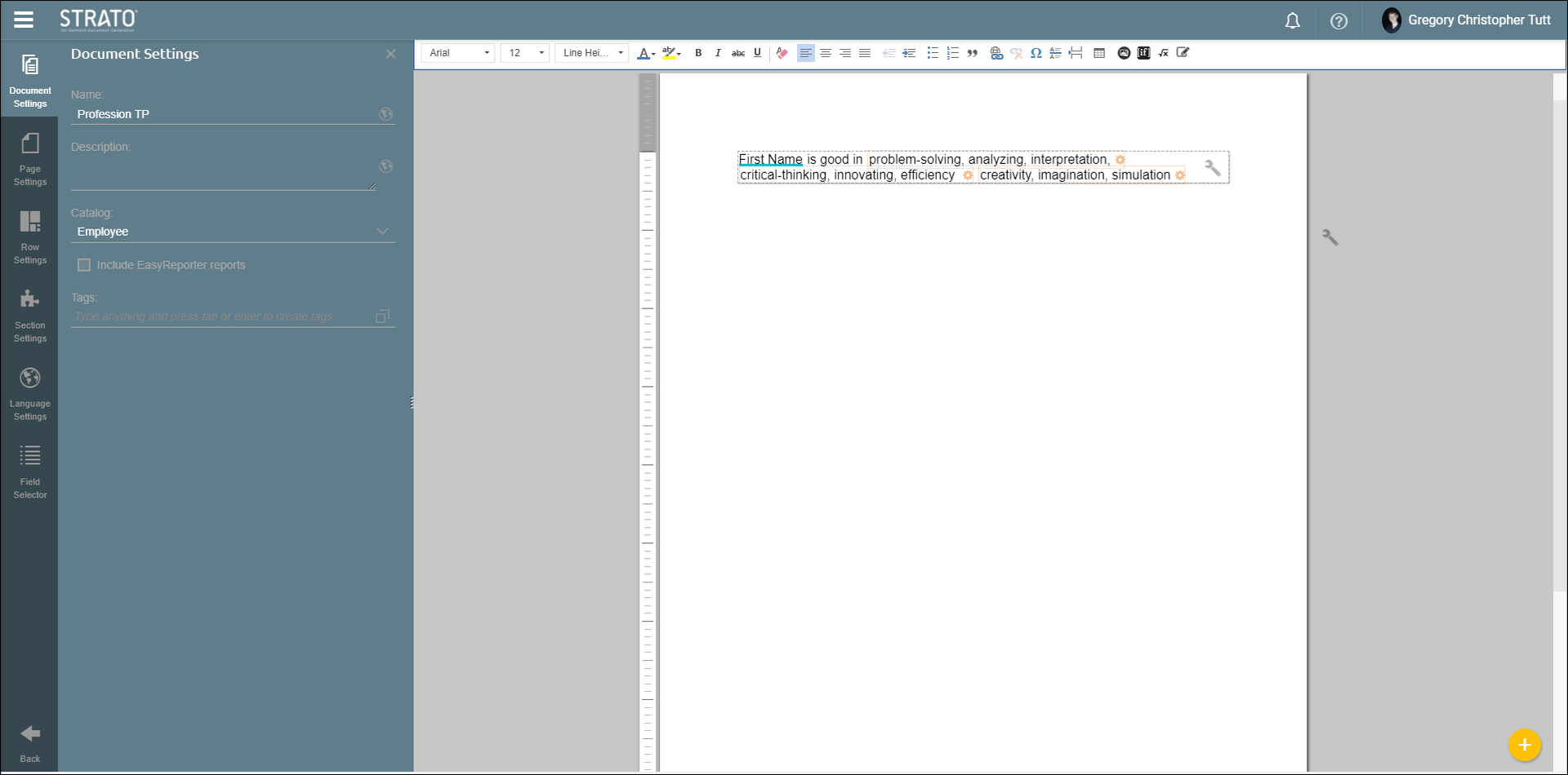 After learning how to create Template Parameters, you can now use these in your Employee catalog document.