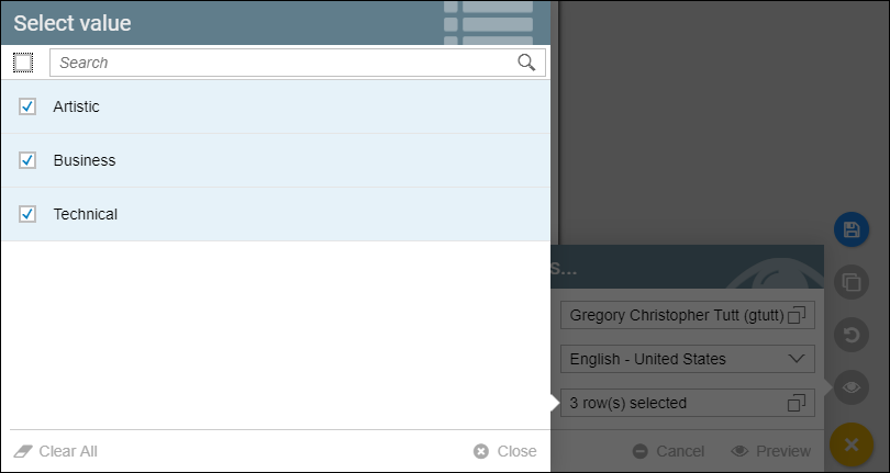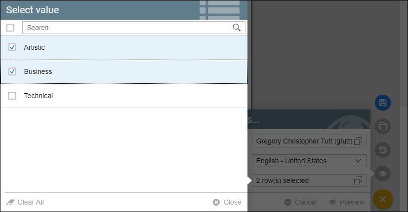 The data for the template parameter field that will be generated on the document will depend on the selection made during 'Preview as...'.