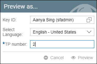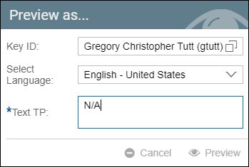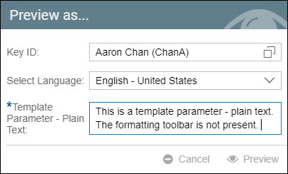 - You will see a Preview as box. Select a Key ID and a Language. You will notice that the last selection is the Template Parameter field that you created.
