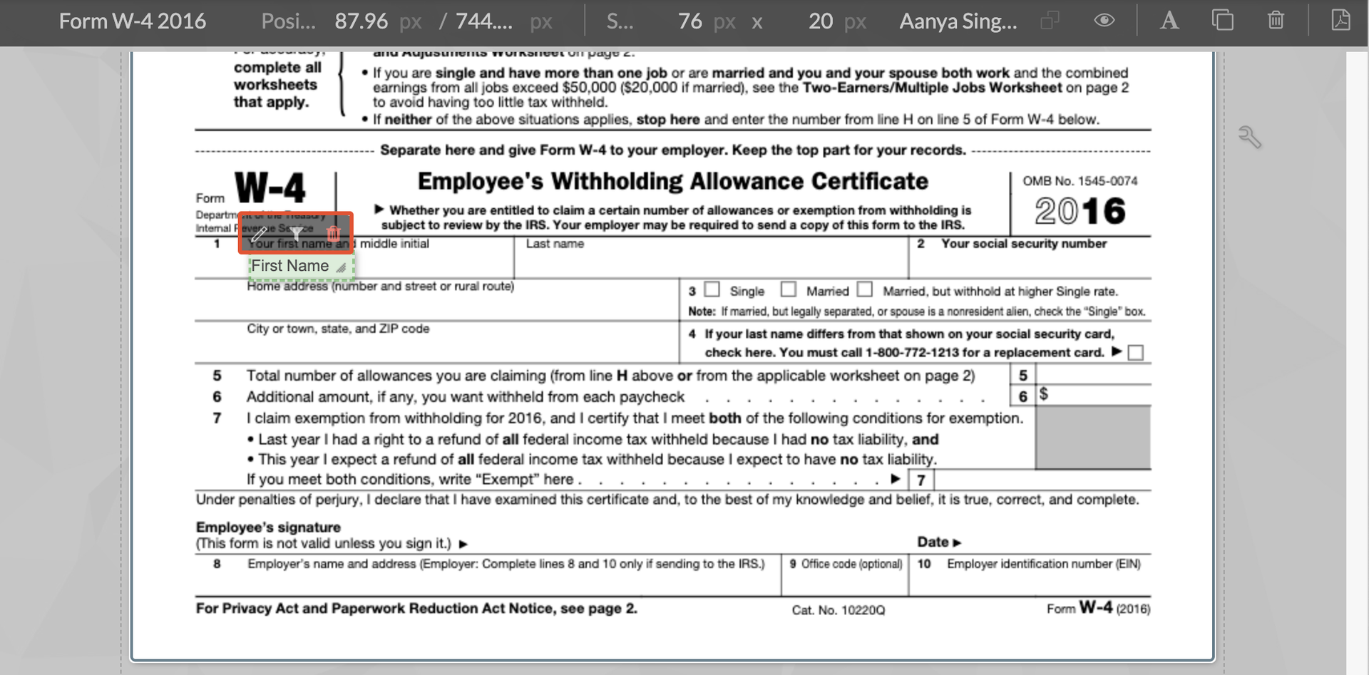 The Duplicate button duplicates your selected field for easy placement across the document.
