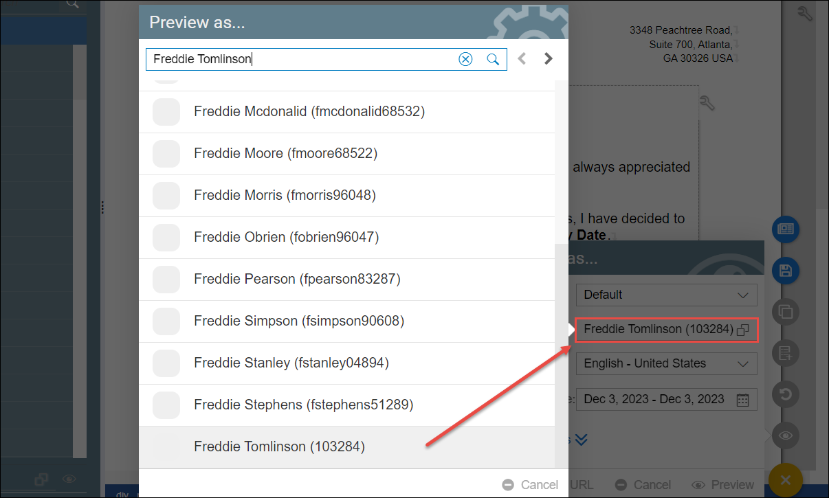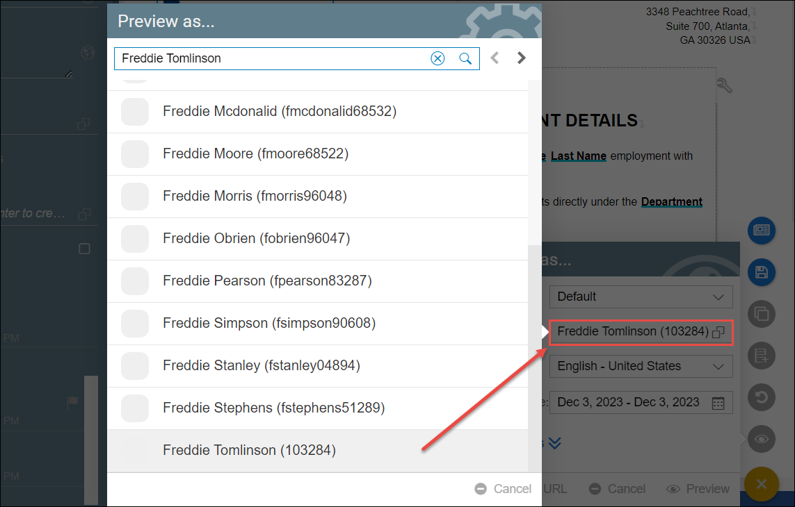 - Choose an employee with pending information from the datasource workflow. For this example, select Freddie Tomlinson.