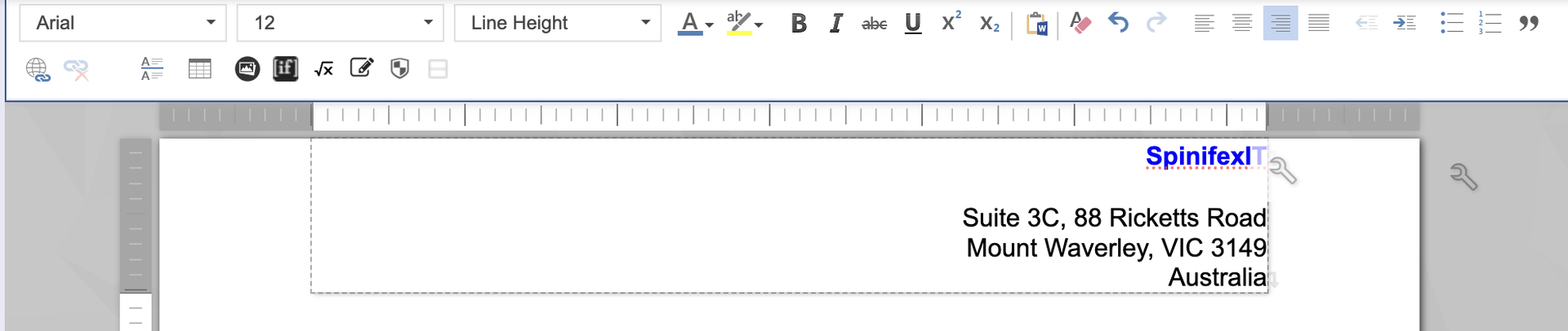 The header is the the topmost part of your document template. This is where you can place your company's logo, tag line, contact details, or company address.