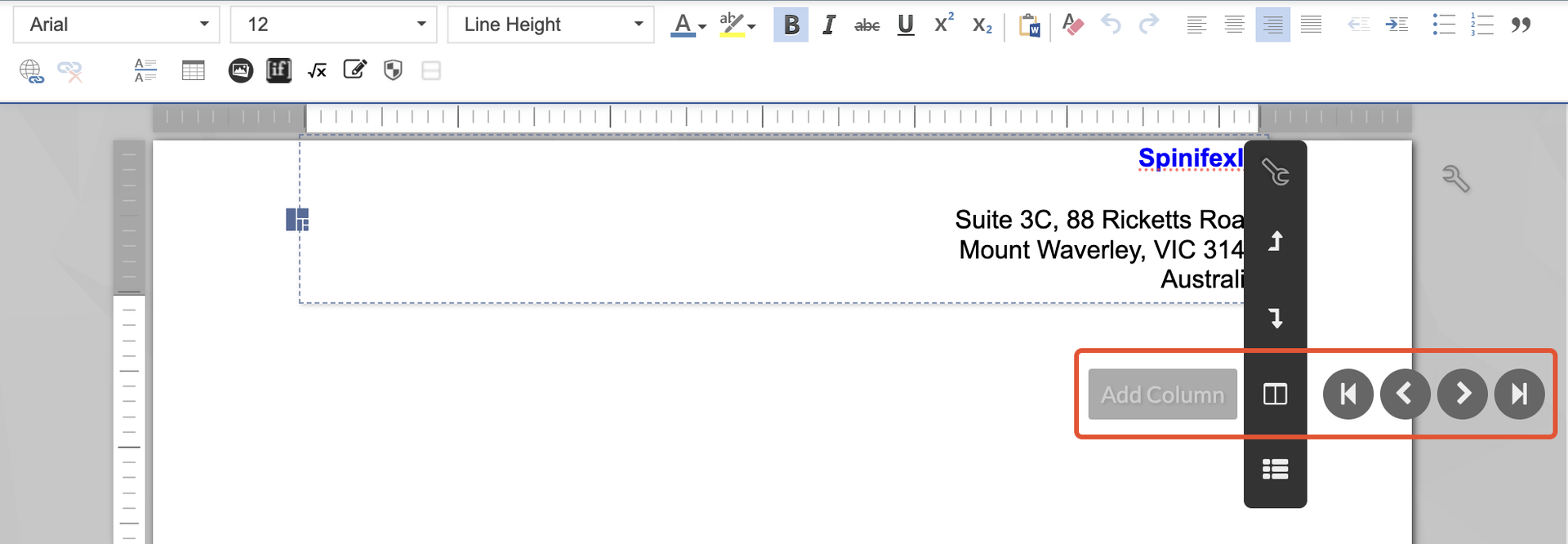 Alternatively, you can also click on the header section's Actions menu, and then select Add Column.