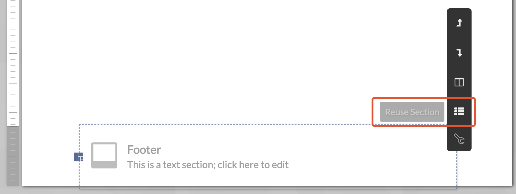 To use reusable sections, click the Actions icon on your section, and then select Reuse Section.