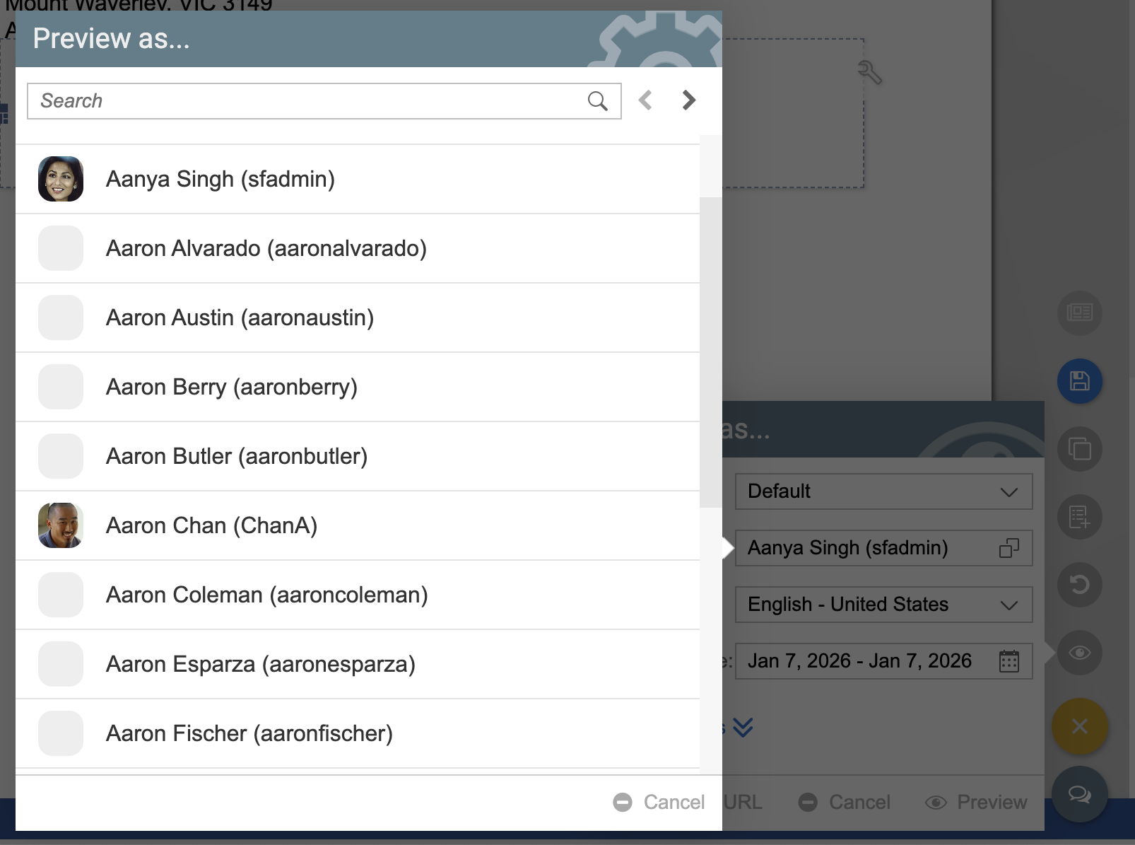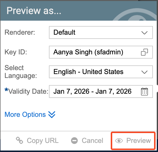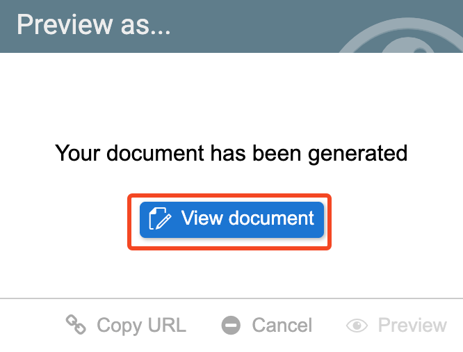 To preview your document, select Actions, then Preview. Select a user from the menu to preview the document as.