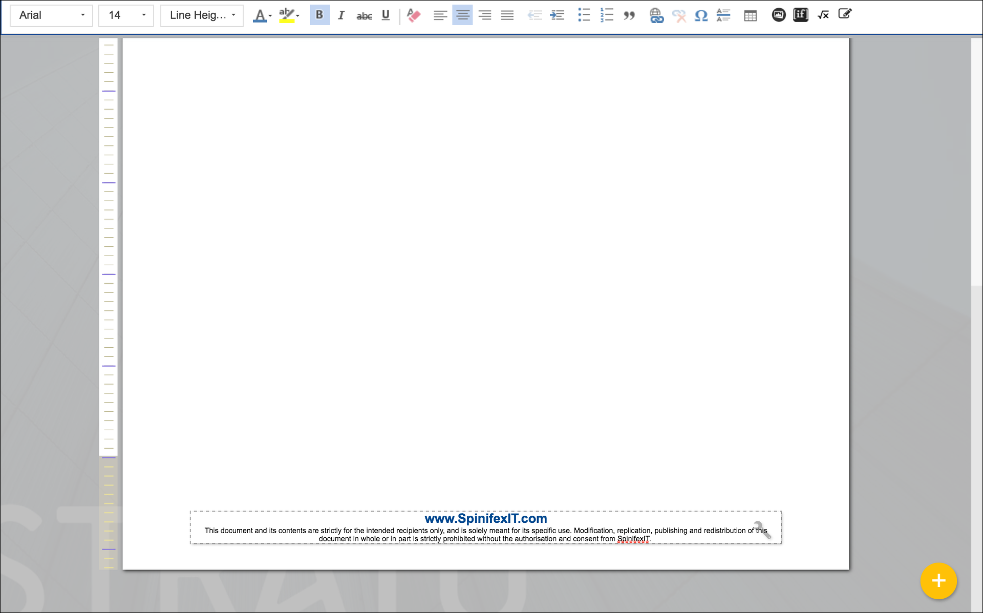 The footer is located at the bottom-most part of your document template. This is where you can put your company's alternate address line, contact details, and website.
