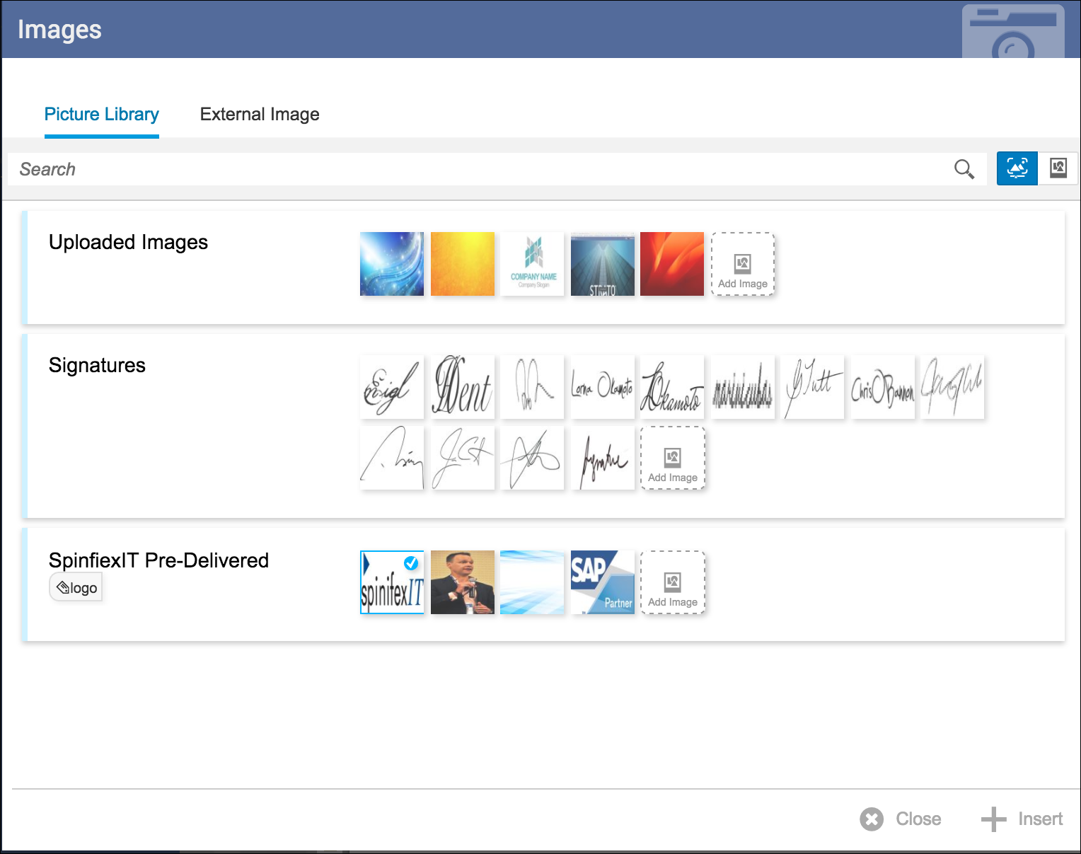 Images such as company logos, icons, and related brand requirements can also be inserted into text sections.
