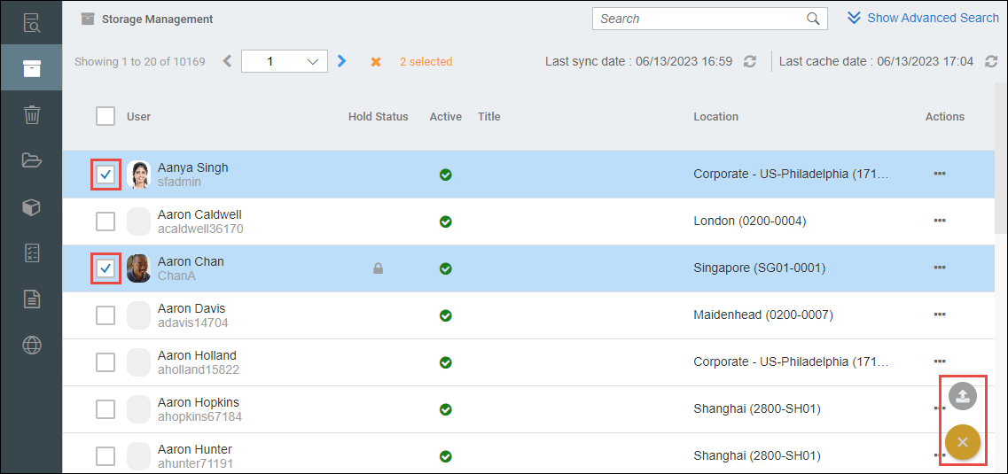 - Floating Action ButtonThe user can upload file/s for user/s by ticking the checkbox to the left of the user thumbnail and is selecting the upload button from the floating action button (FAB).