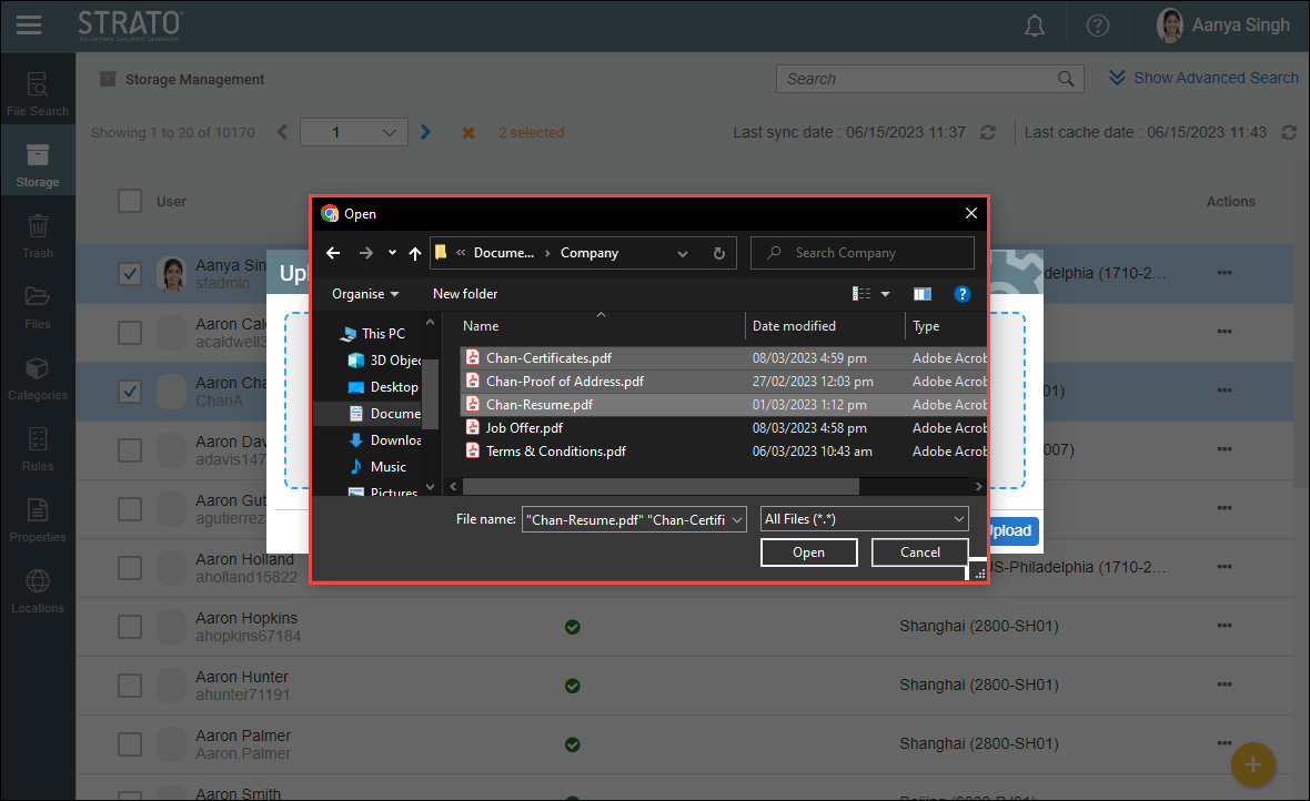 This will lead to Upload Files pop-up screen.