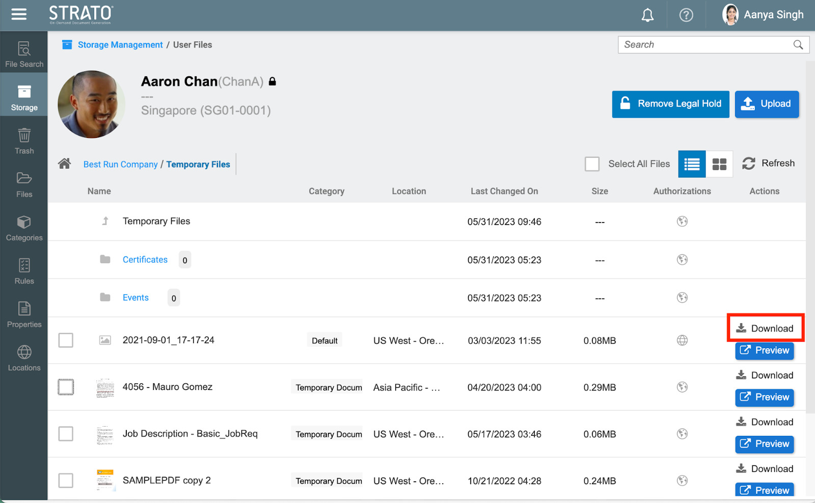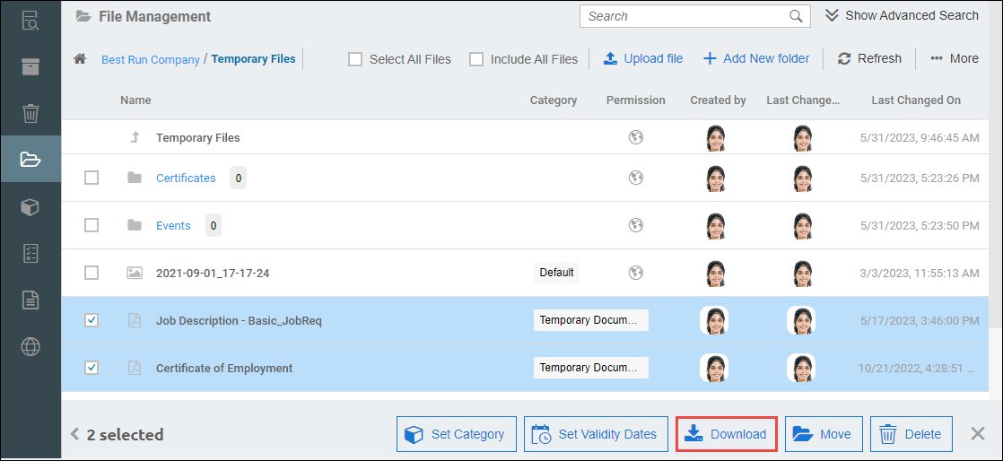 - Users can either click the Download button from the actions column of a specific file.